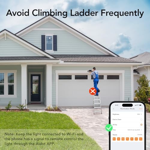 【Voice Control & APP Control】 Connected with wifi, you can control smart flood light outdoor locally and remotely with the Aidot app. You can even control it via voice control after connecting to the Alexa or Google Assistant, no need repeatedly moving the ladder to turn on or adjust it, more convenient and safe !